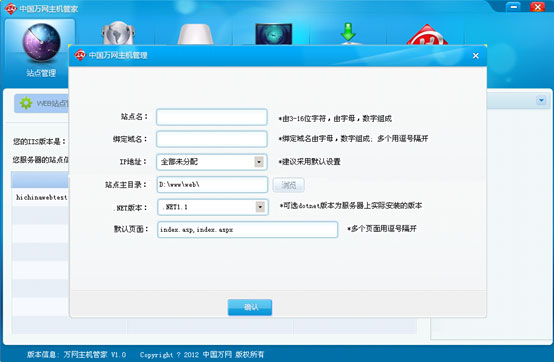 备注:万网翔云、独享主机支持新建和管理10个站点。